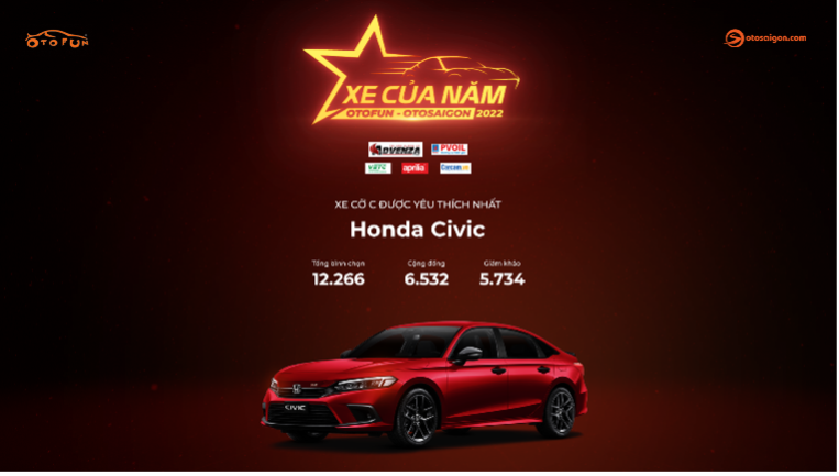 TP. Hồ Chí Minh, ngày 30 tháng 3 năm 2022, tại Lễ công bố và trao giải “Xe của năm” 2022 do 2 diễn đàn OTOFUN và OTOSAIGON đồng tổ chức, Honda City và Honda Civic được vinh dự nhận Giải thưởng “Xe được yêu thích nhất” phân khúc xe hạng B và phân khúc xe hạng C do Hội đồng chuyên môn và độc giả bình chọn.